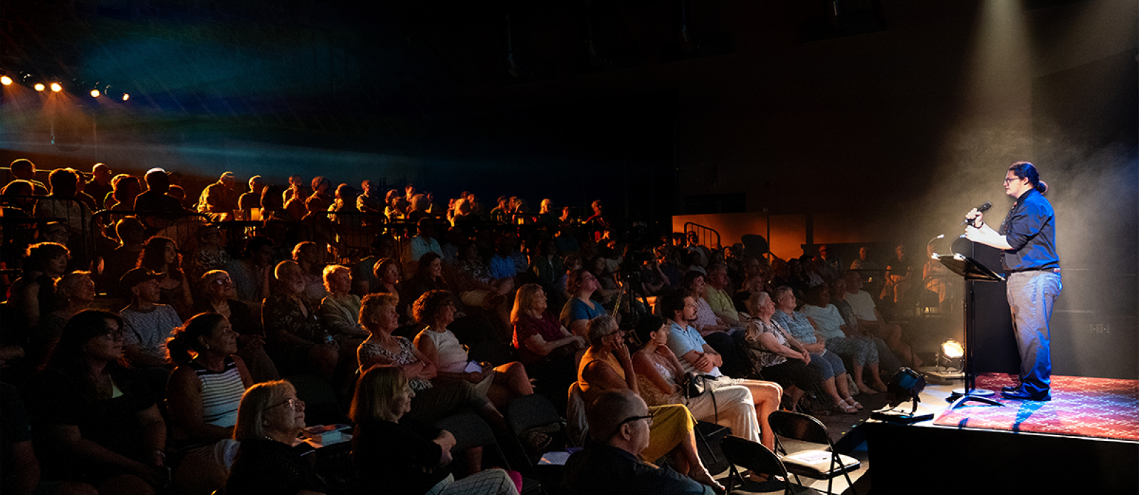 In August, these storytellers bravely entered the spotlight to share “really authentic and beautiful stories,” Moore says, interpreting the theme of resilience to an audience of over 200 people. “Our rural community faces cultural isolation, economic disparity, and a lack of inclusive artistic spaces. Many residents—especially those from low-income, immigrant, or historically marginalized backgrounds—lack access to high-quality arts experiences that reflect their lives.” Moore, who emigrated to America from China at 18, shared her experience of navigating shifting family dynamics as an immigrant. Some storytellers crafted narratives about their relationship to the Berkshires and how they learned to create meaningful lives in Adams. A high school junior shared their story of overcoming anxiety to fulfill their dream of becoming a writer and stage performer. Each story was an invitation for audience members to see a part of their own life experience reflected back to them from the stage.